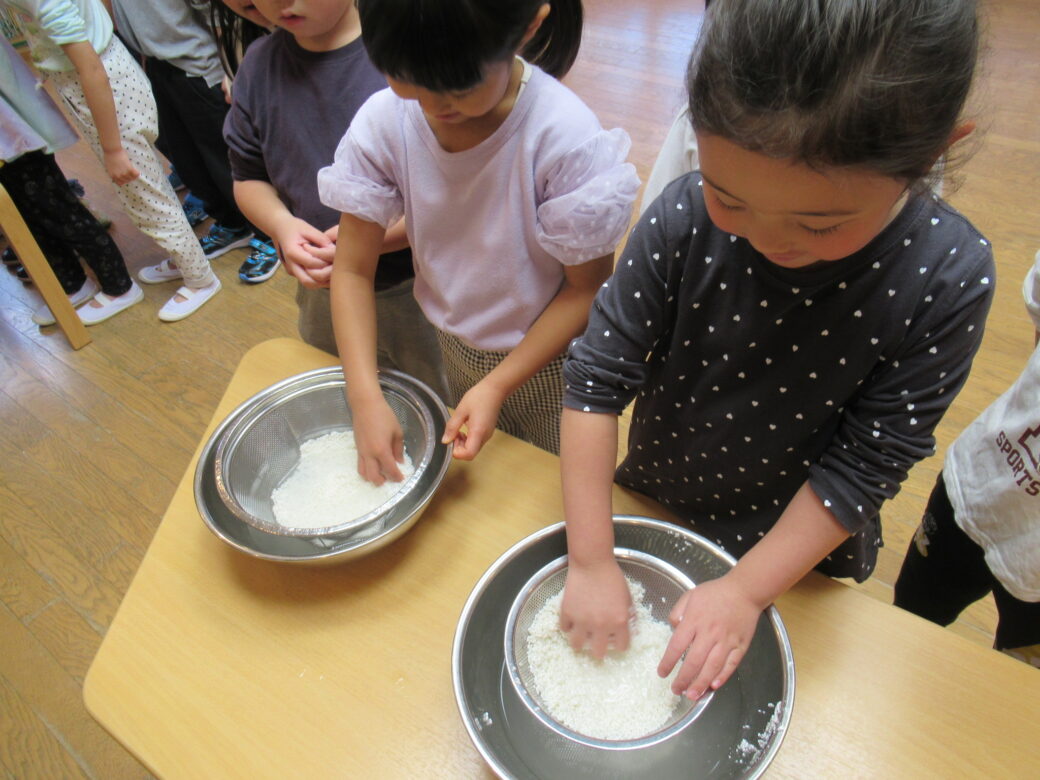 ぞう組の子どもたちは前日にもち米の準備もしてくれましたよ♪