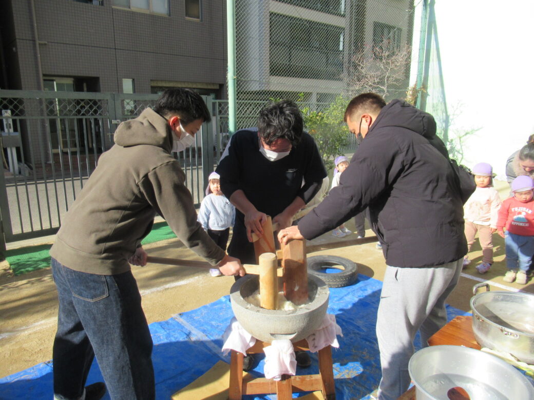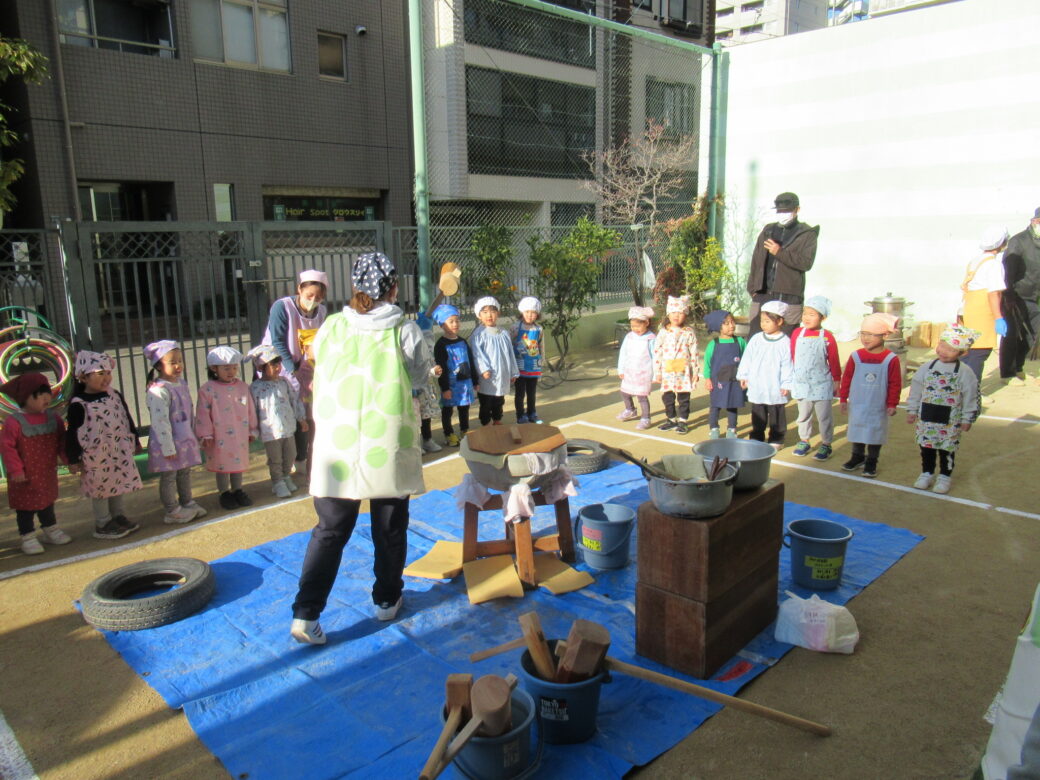 今日は園庭でおもちつきを楽しみました☆